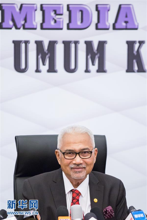 4月10日,在马来西亚普特拉贾亚,马来西亚选举委员会主席穆赫德·哈希姆·阿卜杜拉出席新闻发布会。 新华社记者朱炜摄