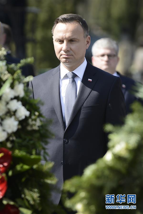 4月10日,在波兰华沙军人公墓,波兰总统杜达参加斯摩棱斯克空难遇难者悼念活动。新华社发(亚普·阿林 摄)
