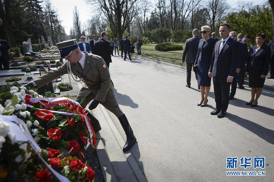 4月10日,在波兰华沙军人公墓,波兰总统杜达参加斯摩棱斯克空难遇难者悼念活动。新华社发(亚普·阿林 摄)