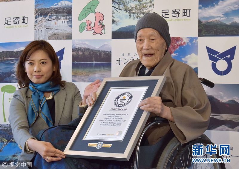 4月10日,日本足寄,日本男子Masazo Nonaka以112岁259天的年龄,获得吉尼斯认证的世界目前在世年龄最长的男性。 (图片来源:视觉中国)