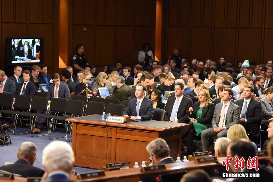 当地时间4月10日,美国社交媒体平台脸书的首席执行官马克·扎克伯格在美国参议院司法委员会和商业、科技和运输委员会举行的联合听证会上作证,并就脸书数据被滥用等问题道歉。 中新社记者 邓敏 摄
