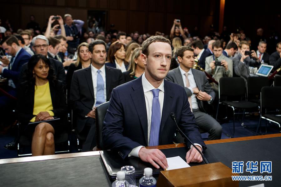 4月10日,在美国华盛顿国会山,脸书公司首席执行官马克·扎克伯格(前)出席听证会。美国社交媒体平台脸书公司首席执行官马克·扎克伯格10日出席听证会,就用户数据泄露事件接受国会质询。 新华社发(沈霆摄)