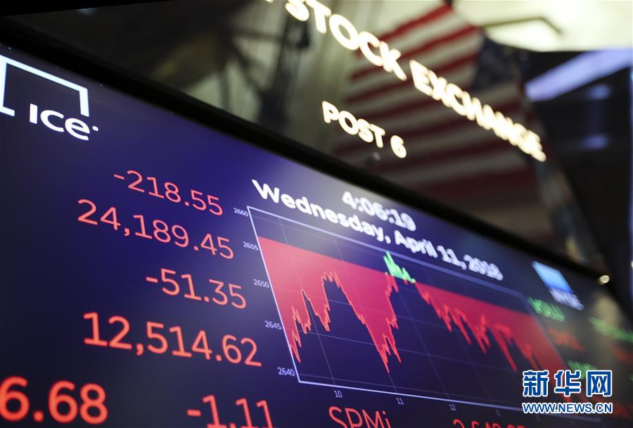 这是4月11日在美国纽约证券交易所拍摄的股指显示屏。新华社记者王迎 摄