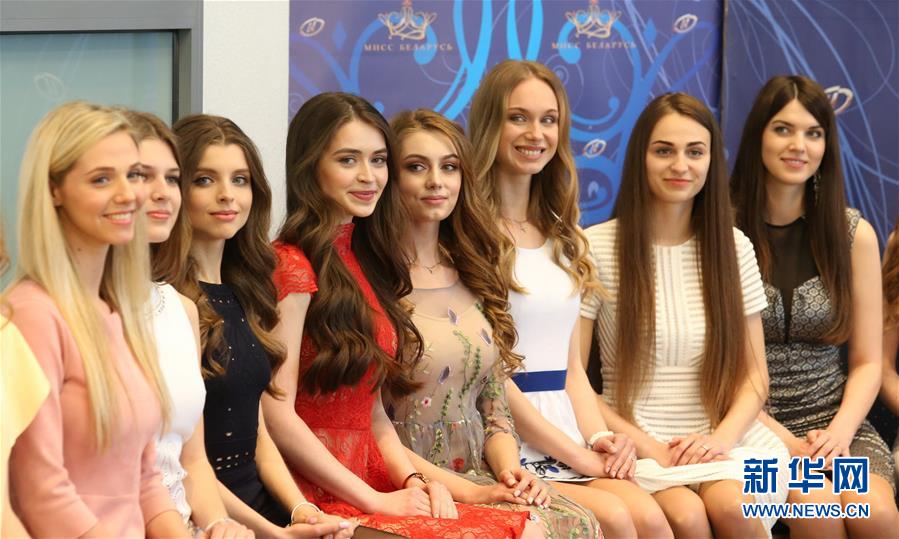 4月12日,在白俄罗斯首都明斯克,参加2018年“白俄罗斯小姐”选美大赛的选手合影。