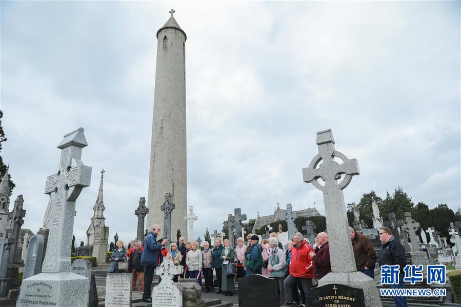 4月14日,在爱尔兰首都都柏林,游客在奥康奈尔塔前参观。