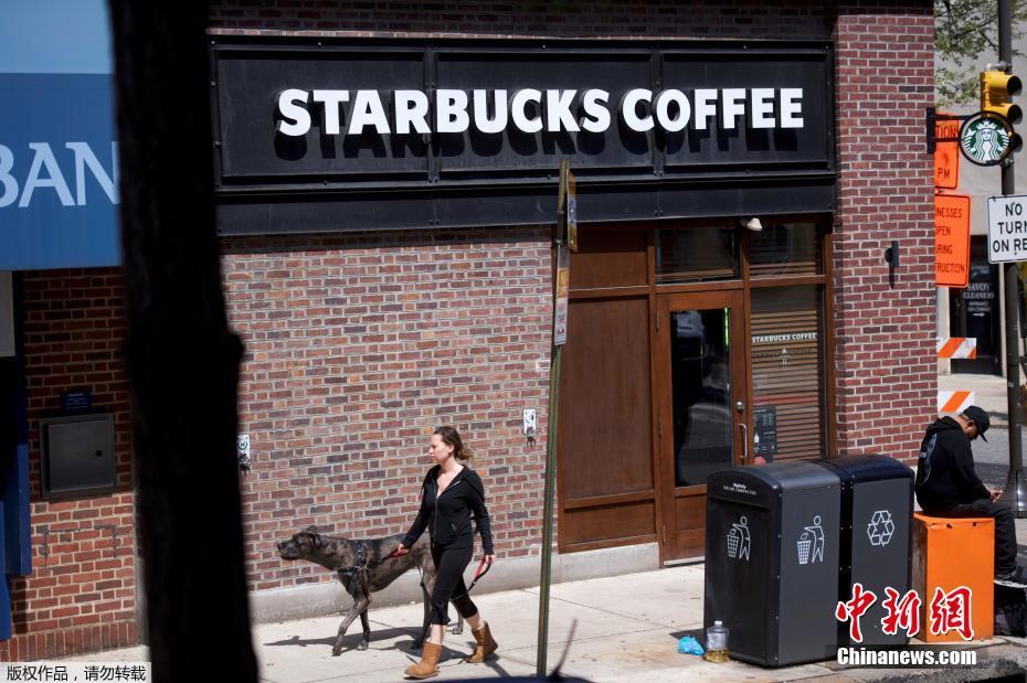 目前,涉事的费城星巴克由于大批抗议者不肯离去而被迫关闭,该店经理已被解雇。星巴克CEO凯文·约翰逊亲自到费城向两名黑人道歉。图为涉事的费城星巴克门店关闭。