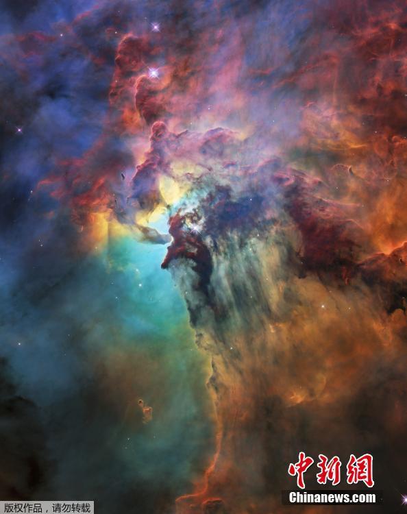 当地时间4月19日,欧洲航天局(ESA)公布了一张礁湖星云的局部高清照片,以纪念“哈勃”太空望远镜服役28周年。礁湖星云位于半人马座,距离地球约4000光年的距离,这个巨型星云的宽度达到55光年,高度也有20光年之巨。