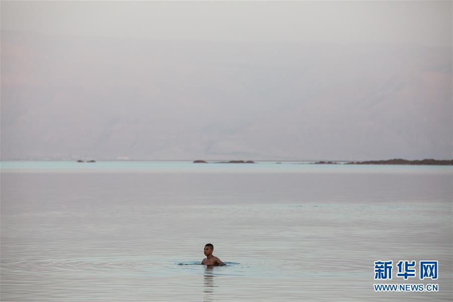 4月8日,在以色列艾因波其克,一个男孩在死海的蒸发池中戏水。新华社记者郭昱摄
