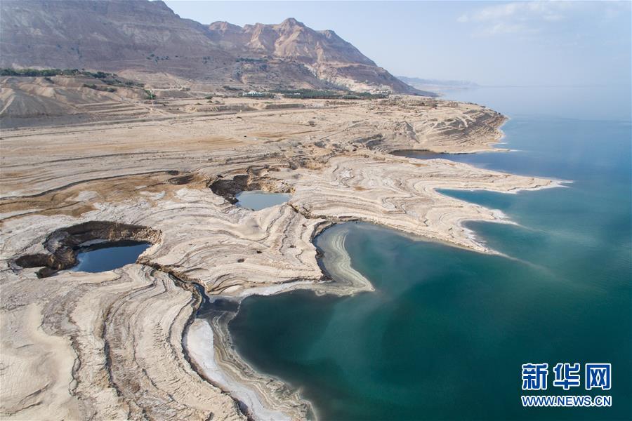 这是4月9日在以色列艾因盖迪附近拍摄的死海沿岸的天坑。新华社记者郭昱摄