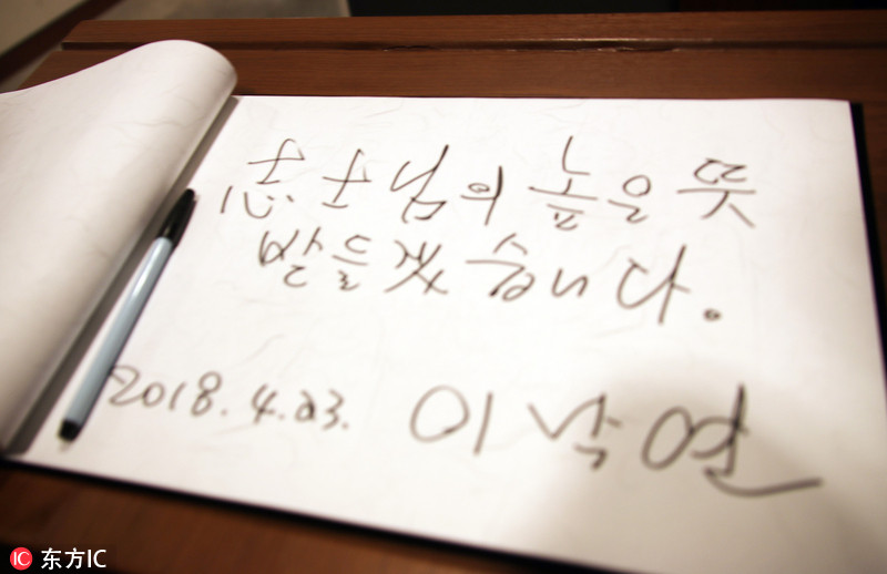 当地时间2018年4月23日,韩国城南,韩国国务总理李洛渊在首尔大学医院吊唁曾领导学生抗日运动的爱国志士。