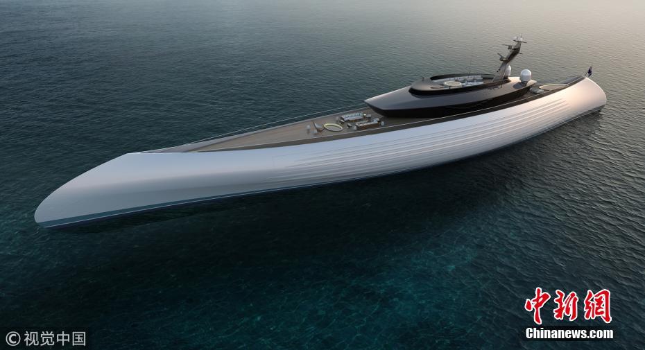2018年4月24日消息,近日,一艘“复古”设计的现代超级游艇被曝光。这艘115米的船是仿照古时的独木舟设计,用来探索太平洋。 图片来源:视觉中国
