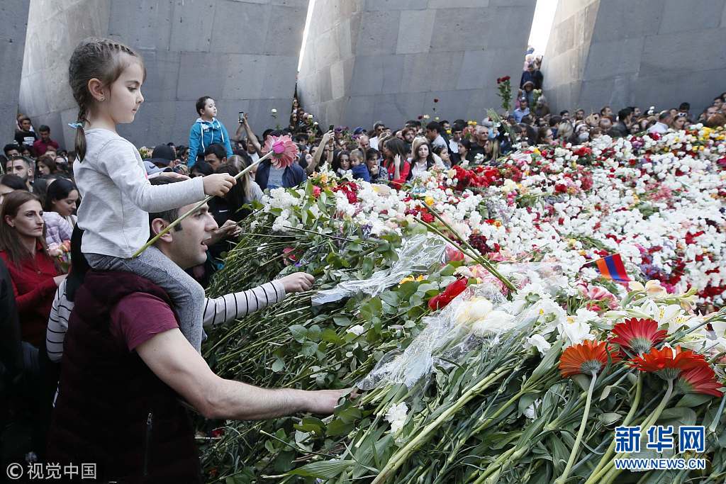 4月24日,亚美尼亚埃里温,亚美尼亚纪念“大屠杀”事件103周年。(图片来源:视觉中国)