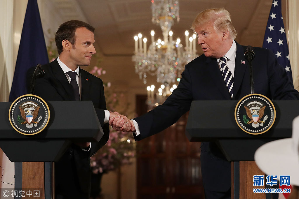 4月24日,美国华盛顿,法国总统马克龙与美国总统特朗普召开联合新闻发布会。(图片来源:视觉中国)