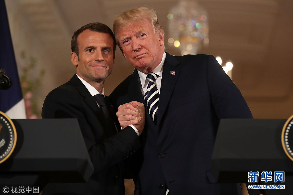 4月24日,美国华盛顿,法国总统马克龙与美国总统特朗普召开联合新闻发布会。(图片来源:视觉中国)