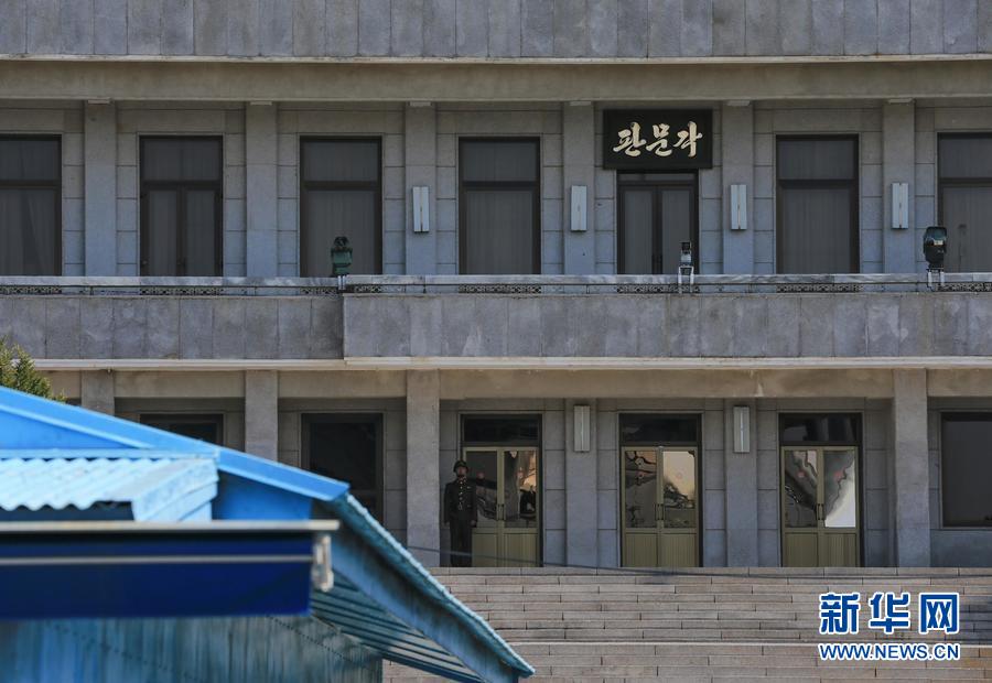 4月18日,朝鲜士兵在位于朝鲜半岛中部的板门店军事分界线朝鲜一侧的板门阁执勤。4月27日,韩朝将在板门店韩方一侧的“和平之家”举行双方第三次首脑会晤。新华网记者王婧嫱摄