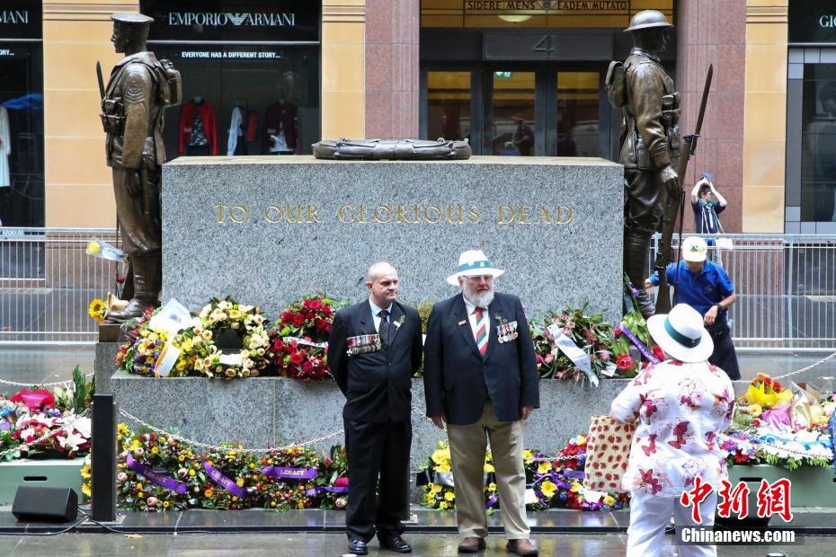 4月25日澳新军团日(Anzac Day),是澳大利亚和新西兰纪念一战期间在加里波利战役中牺牲的澳新将士的日子。当天,悉尼举行纪念日大游行。图为市民在马丁广场上纪念英雄的塑像前留影。中新社记者 陶社兰 摄
