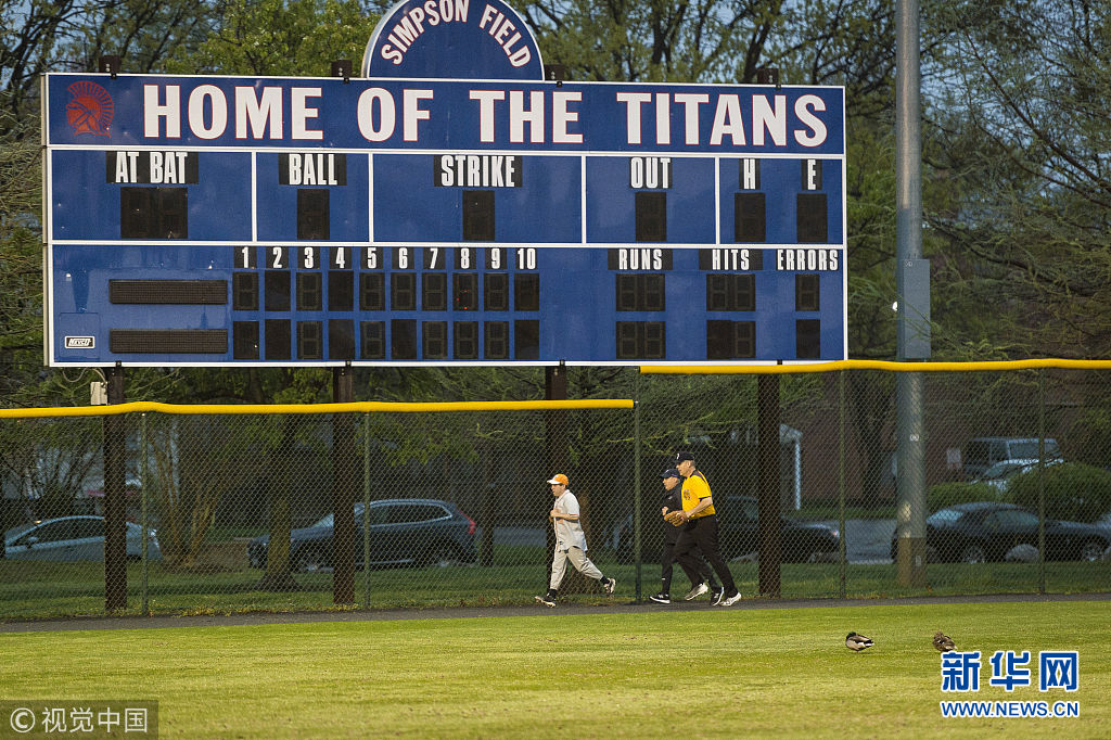 4月25日,美国弗吉尼亚州亚历山大市,多位美国国会议员在Simpson Field为棒球赛进行训练。这是自去年弗吉尼亚州国会棒球训练场发生枪击事件后议员们首次返回训练场。(图片来源:视觉中国)