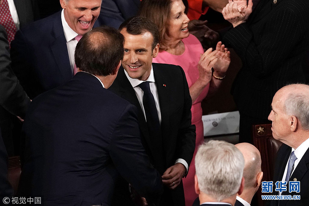 4月25日,美国华盛顿,法国总统马克龙在美国国会山发表演讲。(图片来源:视觉中国)