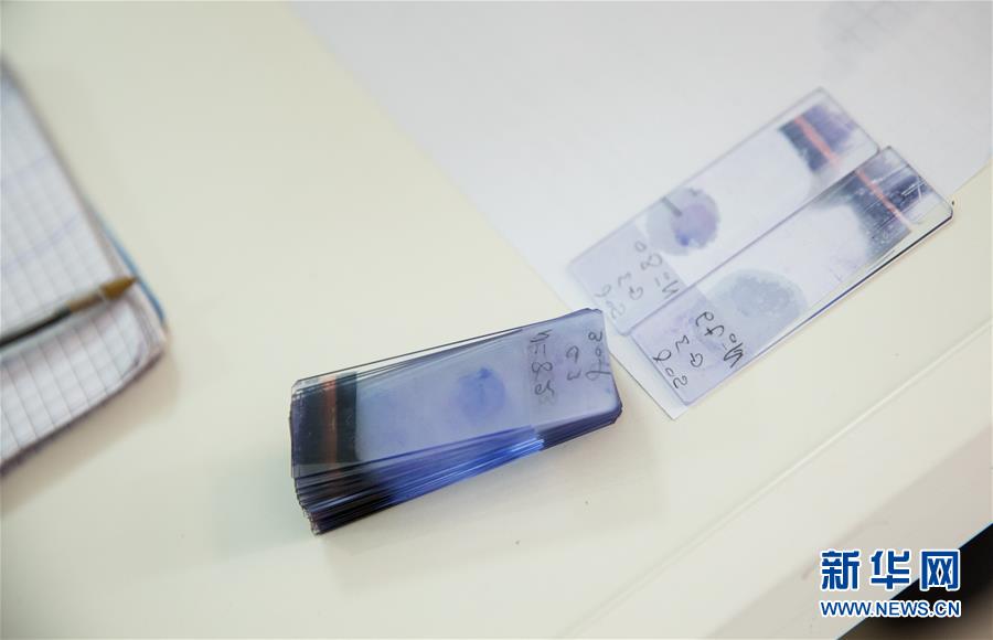 这是4月17日在科摩罗大科摩罗岛拍摄的当地居民血液样本玻片。 新华社记者吕帅摄