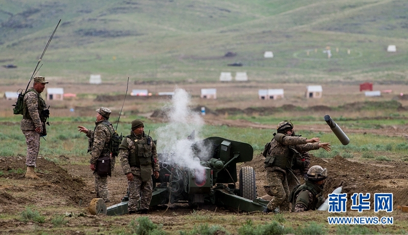 4月26日,哈萨克斯坦武装力量在奥塔尔军事基地举行阅兵式彩排。新华网发(米赫耶夫摄)