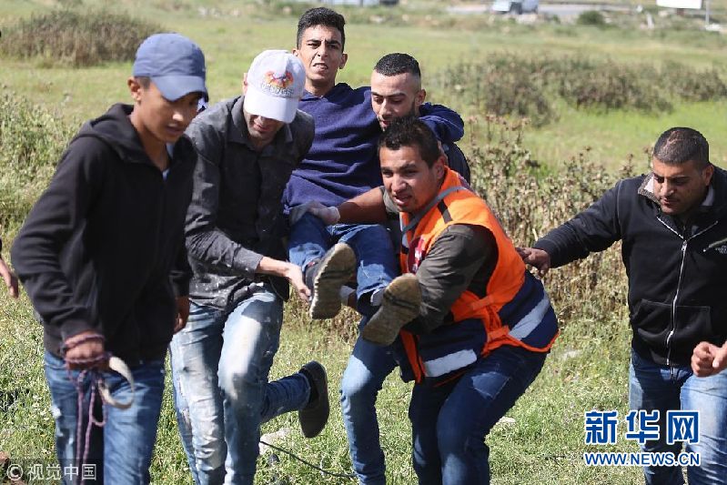 4月27日,约旦河西岸,巴勒斯坦人聚集边境地区举行新一轮抗议活动,与以色列士兵爆发冲突,现场硝烟四起。(图片来源:视觉中国)