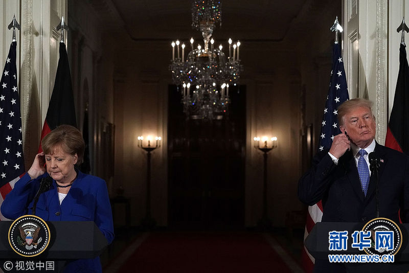 4月27日,美国华盛顿,美国总统特朗普会见德国总理默克尔。(图片来源:视觉中国)
