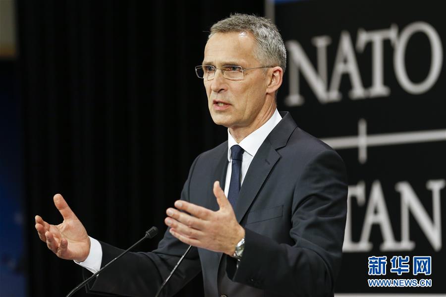4月27日,在比利时布鲁塞尔北约总部,北约秘书长斯托尔滕贝格在新闻发布会上讲话。当日,北约秘书长斯托尔滕贝格在北约成员国外长会后的新闻发布会上表示,北约强调对俄罗斯威慑与对话并举的双轨政策。 新华社记者叶平凡摄