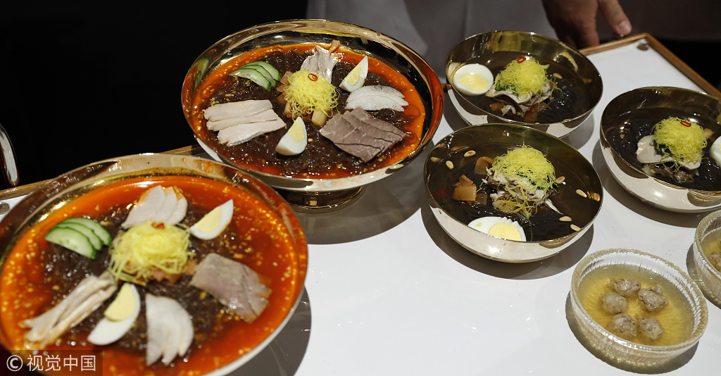 当地时间2018年4月27日,板门店,韩朝首脑晚宴将开始,相关人员将制作好的冷面外送至会场——韩方一侧的和平之家,可谓一份情意满满的朝鲜“外卖”。冷面是玉流馆首席大厨在板门店朝方一侧的板门阁制作的。27日晚,金正恩将与文在寅共进晚宴。根据此前公布的菜单,朝鲜冷面这道菜,是朝方应文在寅“钦点”特意加入的。