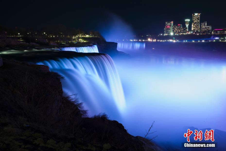 夜色中的尼亚拉加瀑布流光溢彩