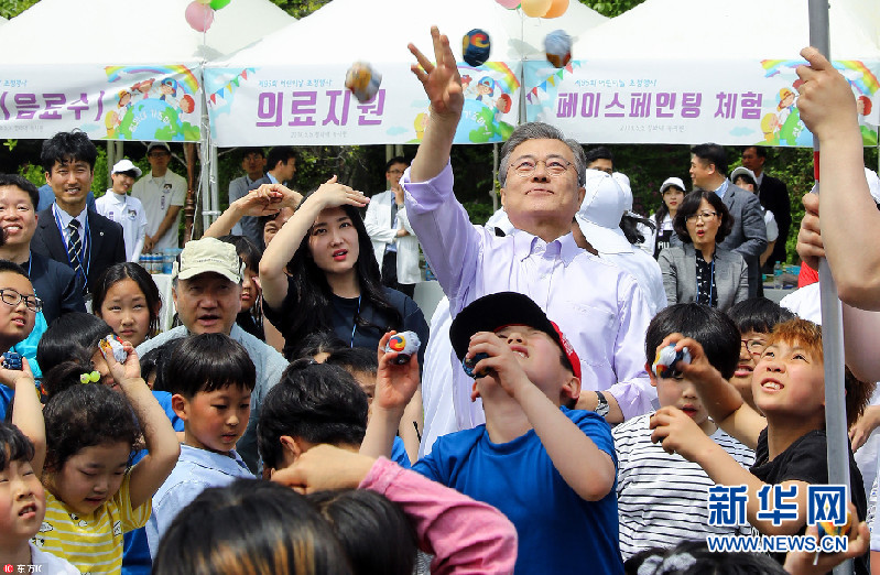 文在寅夫妇儿童节邀孩子们到青瓦台做客 微笑比心合影