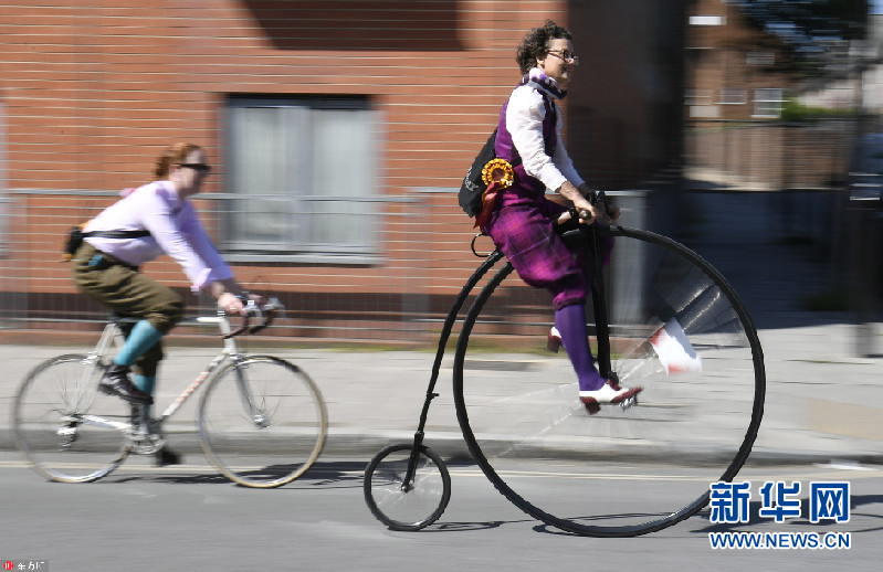 满满穿越感!伦敦举行复古骑行活动