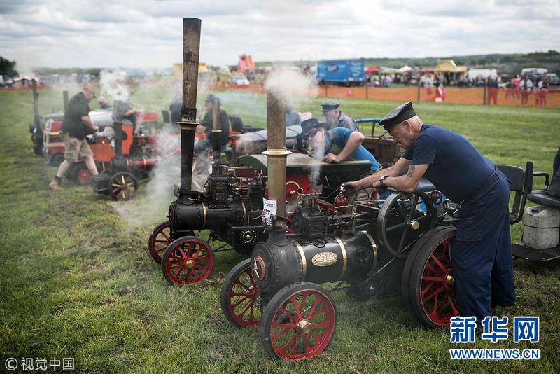 英国举办复古乡村聚会 老爷爷带老式拖拉机兜风