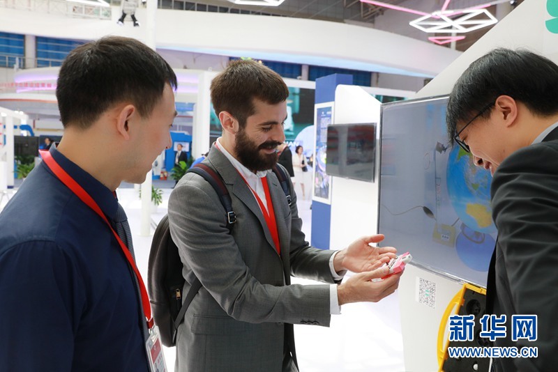 5月11日,第三届丝绸之路国际博览会暨中国东西部合作与投资贸易洽谈会在西安开幕。图为丝博会英国展区,参展商正在向民众介绍展品。新华网发 巩阳 摄