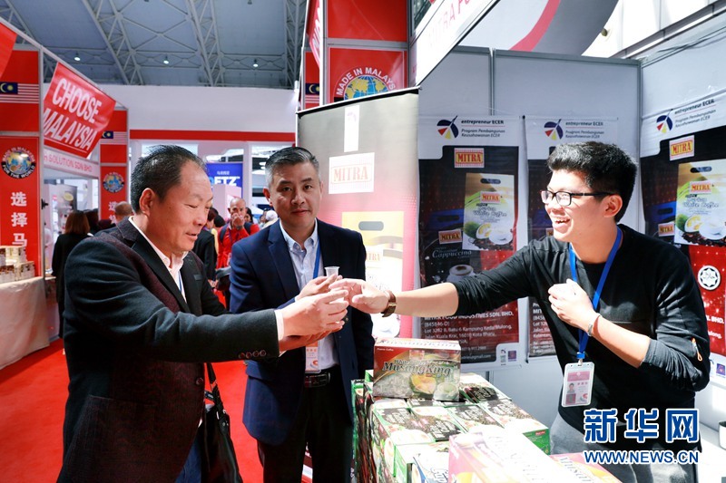5月11日,第三届丝绸之路国际博览会暨中国东西部合作与投资贸易洽谈会在西安开幕。图为丝博会马来西亚展区,参展商邀请观众品尝榴莲咖啡。新华网发 巩阳 摄