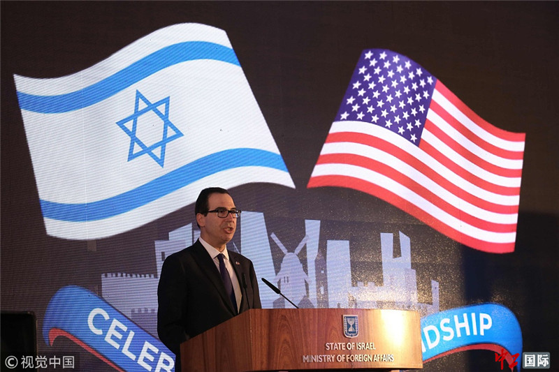 当地时间2018年5月13月,耶路撒冷,以色列总理内塔尼亚胡为美国总统特朗普女儿伊万卡和女婿、白宫高级顾问库什纳等举行招待会。伊万卡和库什纳将出席次日迁至耶路撒冷的美国驻以色列新使馆的开馆仪式。