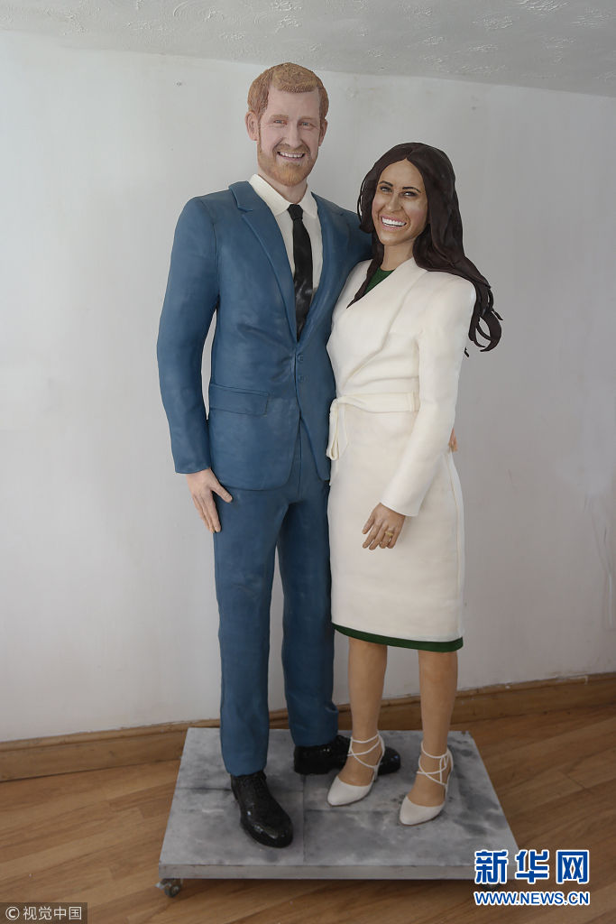 当地时间2018年5月10日,哈里王子和梅根的真人蛋糕可供500多人食用,是由250多人花费6周完成的。(图片来源:视觉中国)