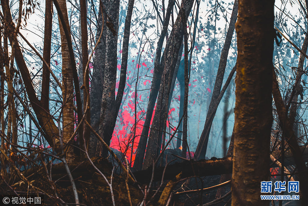 5月13日,美国夏威夷,基拉韦厄火山仍处于持续喷发的状态,火山周围又出现了新的喷发裂缝。(图片来源:视觉中国)