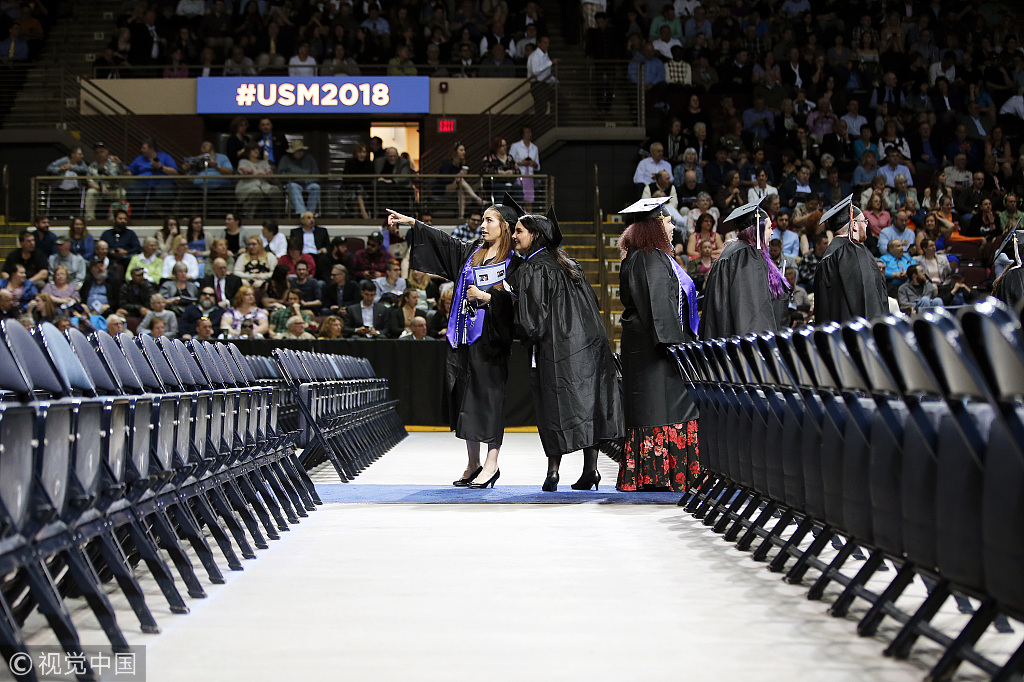 当地时间2018年5月12日,美国波特兰,来自南缅因州大学的900多名本科生和研究生参加了毕业典礼,他们中的许多人都戴上了个性的学位帽。