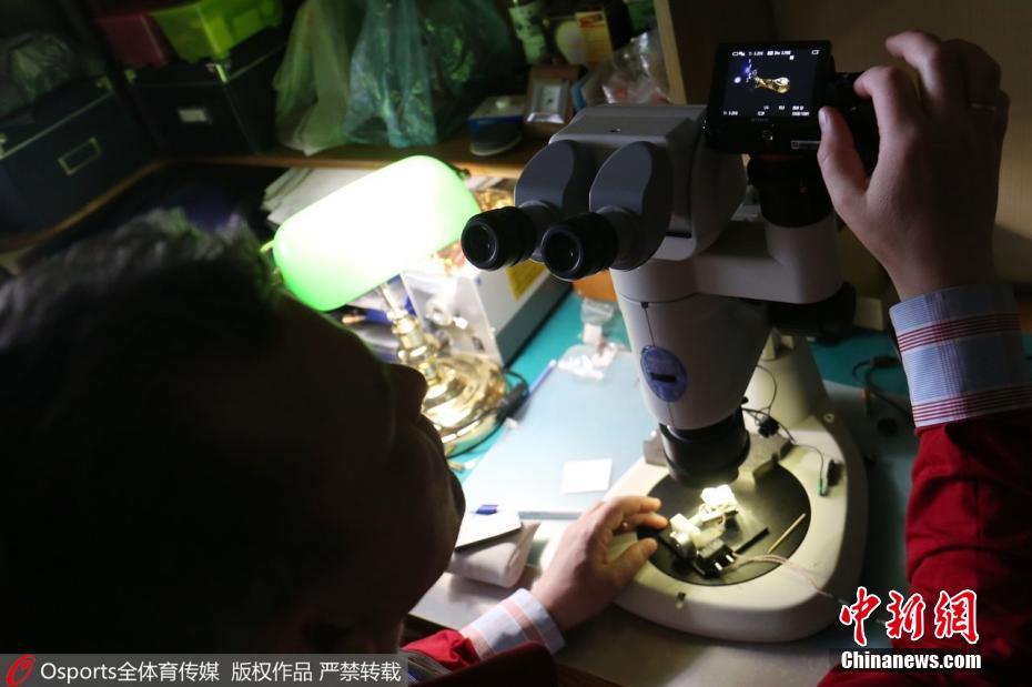弗拉基米尔·阿尼斯金(Vladimir Aniskin)此前曾花5年时间,制作了一本宽70微米、高90微米(即宽0.07毫米、高0.09毫米)的微型图书。 图片来源:Osports全体育图片社