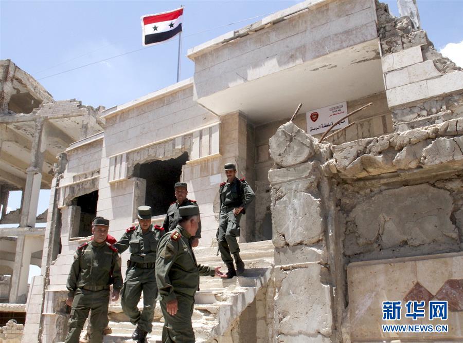 这是5月16日在叙利亚霍姆斯省赖斯坦内拍摄的警察。叙利亚霍姆斯省省长塔拉勒·巴拉齐16日告诉新华社记者,随着最后一批反政府武装人员当天从霍姆斯省北部撤离,叙政府已全面收复中部省份霍姆斯。新华社发(胡马姆·谢赫·阿里 摄)