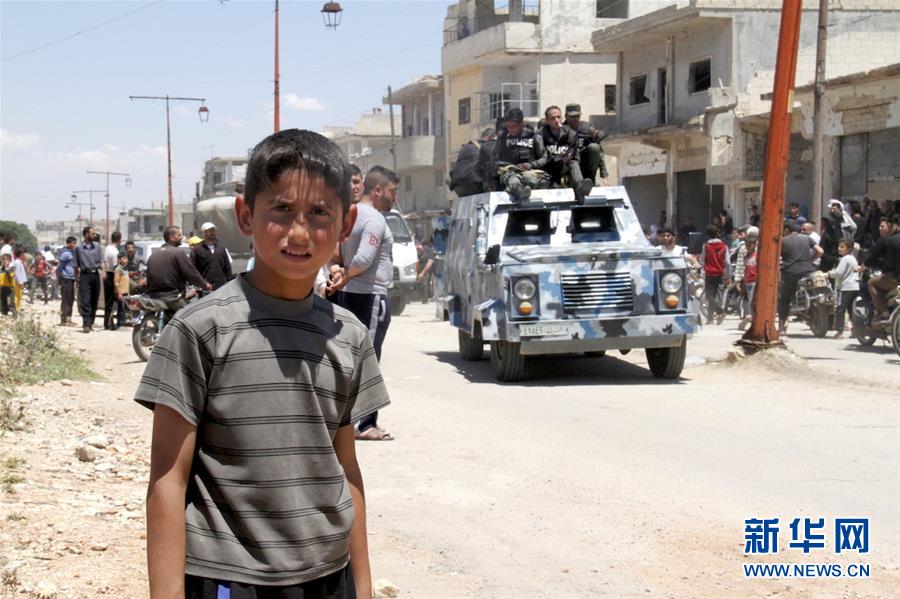 5月16日,在叙利亚霍姆斯省赖斯坦,警察在市内巡逻。叙利亚霍姆斯省省长塔拉勒·巴拉齐16日告诉新华社记者,随着最后一批反政府武装人员当天从霍姆斯省北部撤离,叙政府已全面收复中部省份霍姆斯。新华社发(胡马姆·谢赫·阿里 摄)