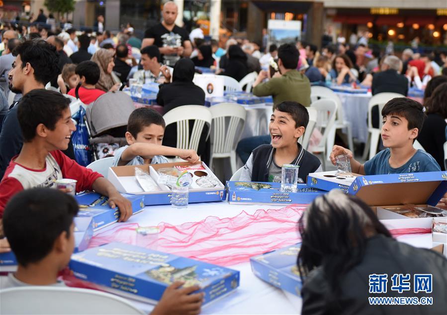 5月16日,在土耳其伊斯坦布尔塔克西姆广场,儿童们在吃晚餐前谈笑。当日,土耳其迎来斋月第一天。日落后,伊斯坦布尔各城区为民众提供免费晚餐,庆祝斋月首日。 新华社记者 贺灿铃 摄