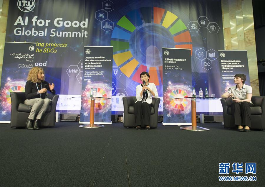5月17日,在位于瑞士日内瓦的国际电信联盟总部,中国首位女航天员刘洋(中)出席世界电信和信息社会日活动。5月17日是世界电信和信息社会日。国际电信联盟将今年的主题确定为“推动人工智能的正当使用,造福全人类”,呼吁发掘人工智能潜力,加速实现联合国可持续发展目标。新华社记者 徐金泉摄