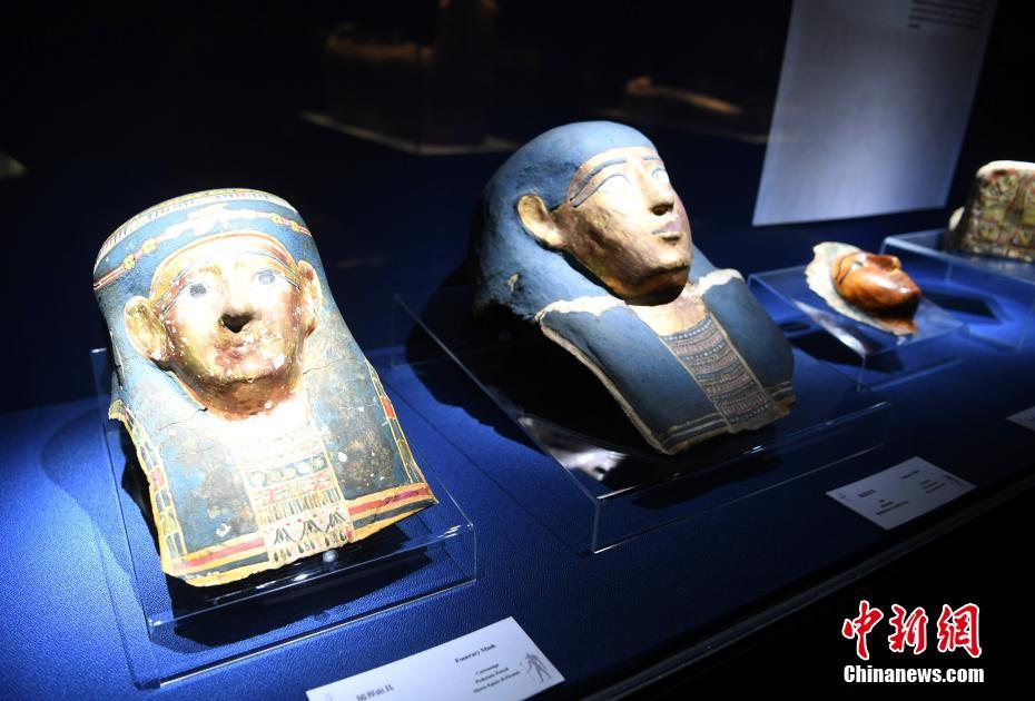 在安徽省博物馆古埃及木乃伊特展上展出的“木制随葬面具”。韩苏原 摄