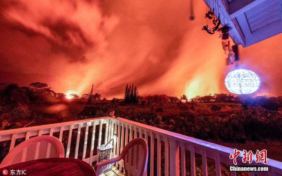 夏威夷居民紧急撤离 熔岩映红夜空逼近自家阳台