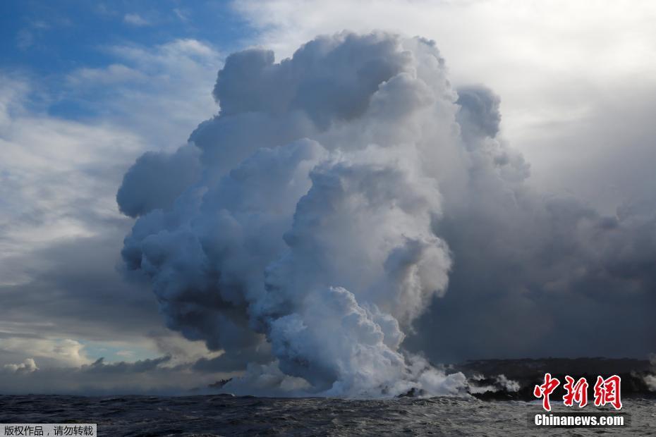 夏威夷火山岩浆流入太平洋 形成有毒蒸汽云