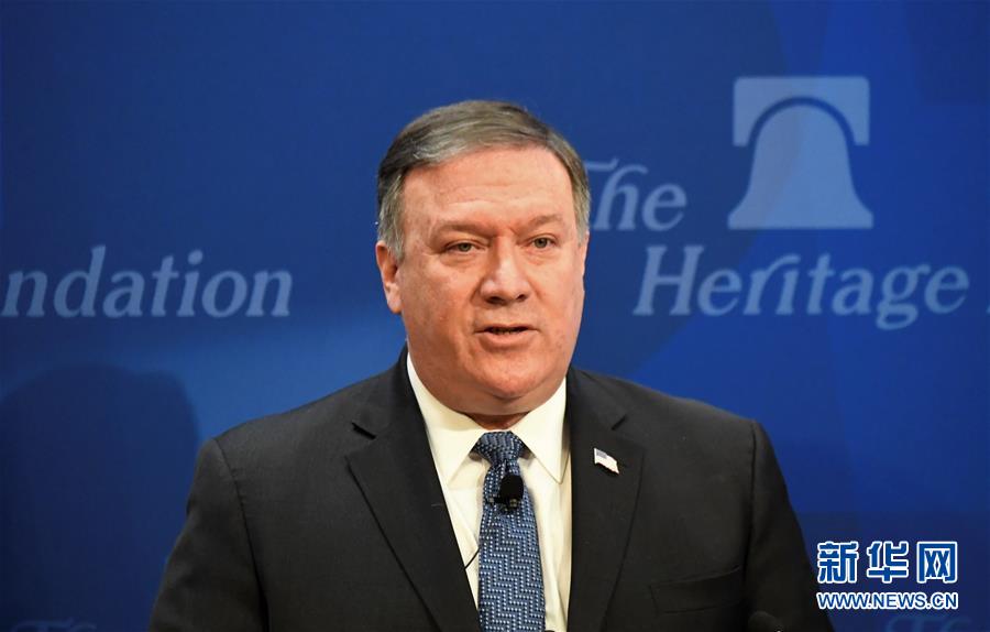 5月21日,美国国务卿蓬佩奥在华盛顿的美国智库传统基金会发表演讲。美国国务卿蓬佩奥当日表示,伊朗如果不改变当前路线,将受到美国“最严厉的制裁”。 新华社记者杨承霖摄