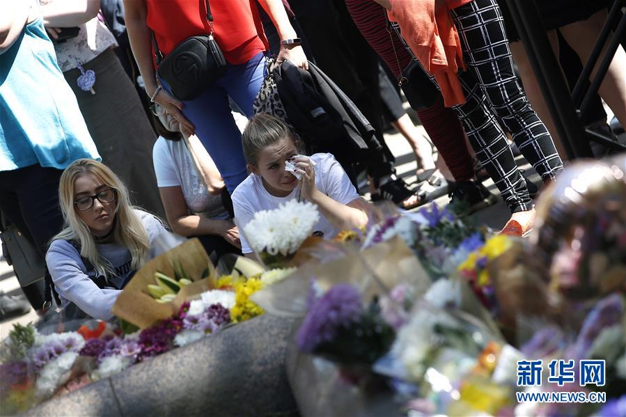 5月22日,在英国曼彻斯特,人们参加悼念活动。新华社发(克雷格·布劳摄)