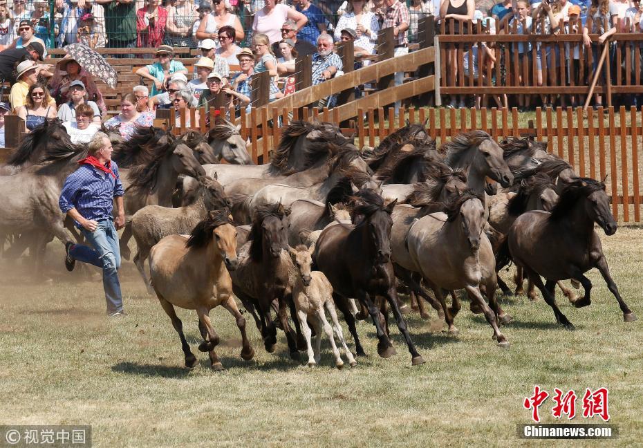 德国举行野马展 现场尘土飞扬场面壮观