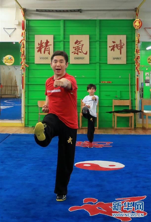图为王伟(前)带着小学员训练(5月30日摄)。新华社记者 李颖 摄